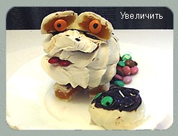 Детали скрепляются разогретым шоколадом. Неплохо будет выглядеть лягушонок и из зефира в шоколаде, или комбинированный. Если зефирина в шоколаде лишь одна: срежьте один ее край острым ножом и получите белый открытый ротик!