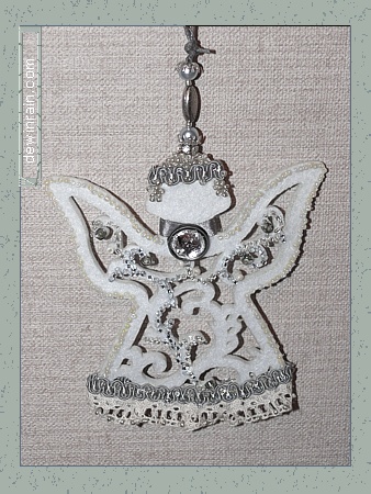 Фетровый ангел. Цвет - белый. Цена 50 рублей �?тука. � ас�?ит бисером, сделана юбочка из остатков кружева и тесьмы, волосы сделаны из бисера, нимб - из тесьмы, все это закреплено на подвеску. Стараз - как и на �?арах и на бабочках. В целом декора рублей на 15-20. То есть до 100 рублей мы получаем
