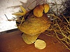 2. Для тех, кто постарше подойдет лягушонок их кокосового ореха. Сейчас модны природные материалы и этнические направления в дизайне дома. Вам понадобится кокосовый орех и два грецких ореха. Клей или болты с гайками и немного помощи мужчины, чтобы выпилить в верхней части ореха углубление. Из выпиленной части можно сделать подставочку. Вычистив орех от мякоти, и приклеив два глаза, мы получаем вазочку для мелочей (например ключей в прихожей), цветочный горшочек, салфетницу или форму для подачи орехов гостям. Проследите за тем, чтобы подставка обеспечивала устойчивость и фигурка не качалась. Просто, быстро, удобно и вкусно. Можно добавить разные украшения из семечек плодов, деревянных бусин, стружки и так далее... Если у вас нет возможности распилить орех, то подставочку можно сделать из сучка или куска дерева, а лягушонка просто как украшение дома, без функциональной направленности - область возможного применения подскажет сама жизнь:)Над летней серией лягушат из природного материала обещаю подумать летом!!!