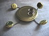 Из всего этого сделали 4 подарка: подсвечник для мамы, (внутри лягушонок), вазочку для бабушки, картинку для сестрички и медальончик для подружки! За час справились со всей работой.